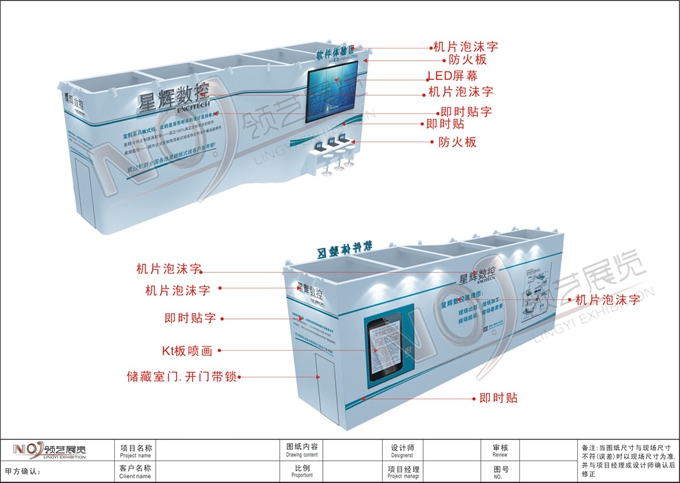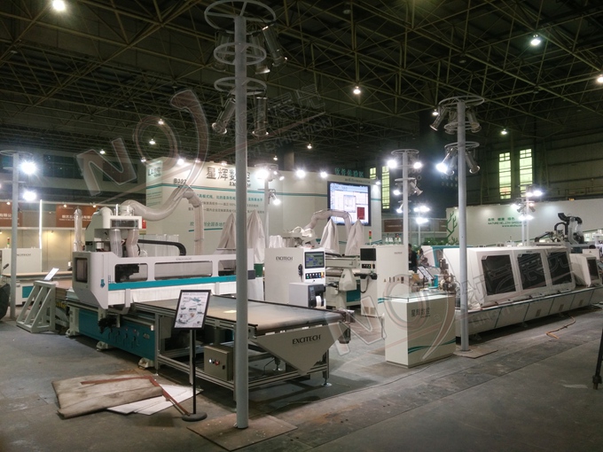 契合星辉数控的品牌形象和产品特性,采用框型结构,再搭配灯具灯光的效果,衬托出展位简约、便捷的氛围,突出一种精致、简约的时尚品味。